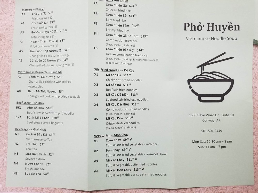 Welcome to Pho Huyen, a delightful gem for Vietnamese cuisine nestled in Conway, Arkansas. This classy eatery promises an exceptional culinary experience, offering a menu that caters to diverse tastes, including many vegetarian options and convenient takeout.